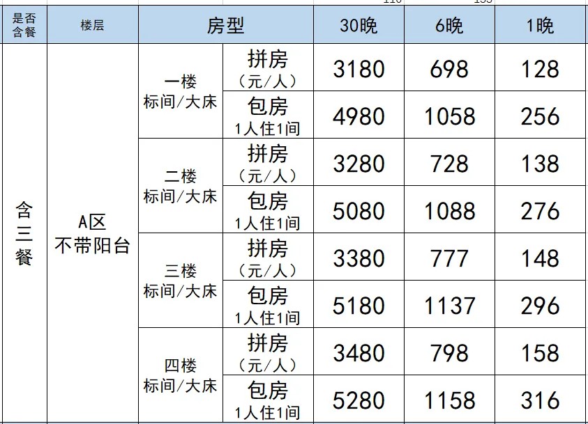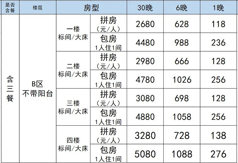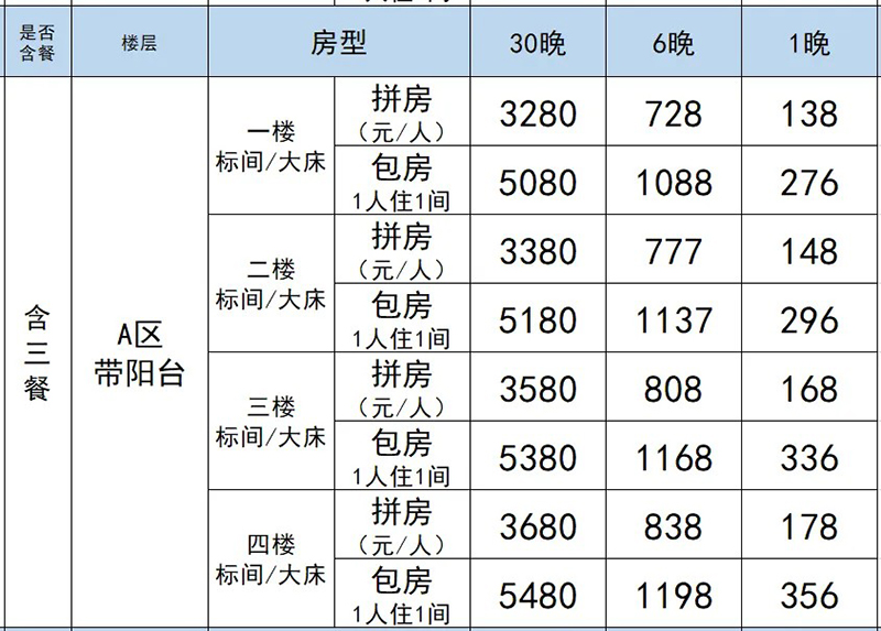 (7)到基地后续住,需按照基地当时的长住价格续住;