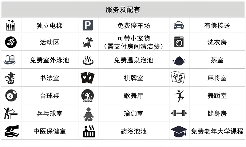 基地内设施完善,保证舒适的住宿体验。餐饮方面,午餐和晚餐均提供十二菜一汤,满足您的美食需求。此外,基地还拥有独立电梯、活动区、室外泳池、温泉泡池、洗衣房、棋牌室、健身房、茶室及超大停车场,让您在享受自然美景的同时,充分体验各种休闲设施。