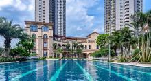 海南恒大海口湾康养度假基地位于海南省海口市龙华区杜鹃路与海棠路交界处的海口湾,南邻滨海大道,北靠滨海休闲公园,西邻秀英港口国际游艇码头,距1400亩绿林万绿园约1公里。总占地面积5万平方米,按四星级标准投资兴建的养生度假酒店式公寓,拥有200多间客房,主要为标准双人间、大床房、一居两居套房。配有中西自助餐厅、典雅大堂,游泳池、花园散步小道、健身房等文体娱乐配套,特为康养度假客户打造一个高雅温馨舒适的休闲度假基地。